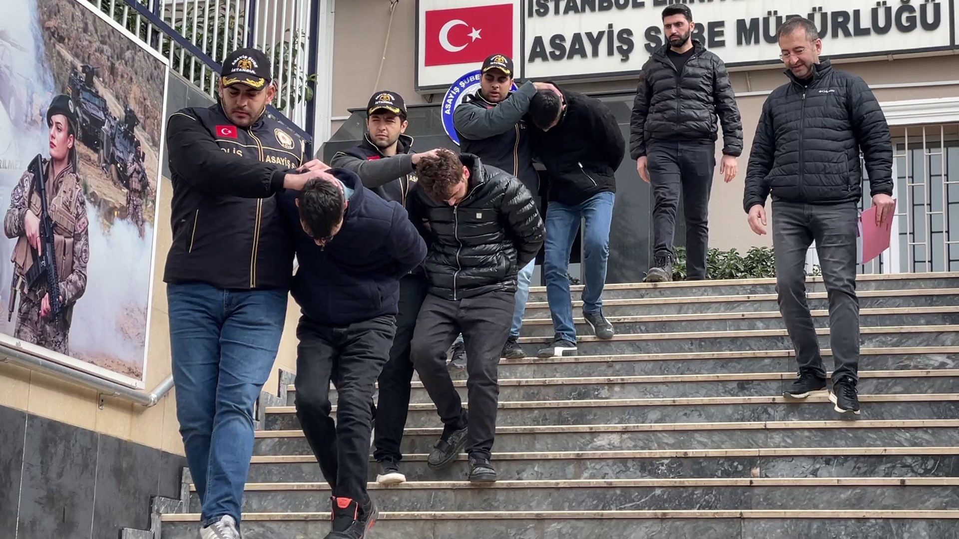 Gasp olayını D.Ç. (40), O.Ç. (34) ve M.D.’nin (32) gerçekleştirdiği tespit edildi. Çok sayıda suç kaydı olduğu belirlenen şüpheliler kısa sürede yakalandı. Emniyetteki işlemleri tamamlanan şüpheliler adliyeye sevk edildi.