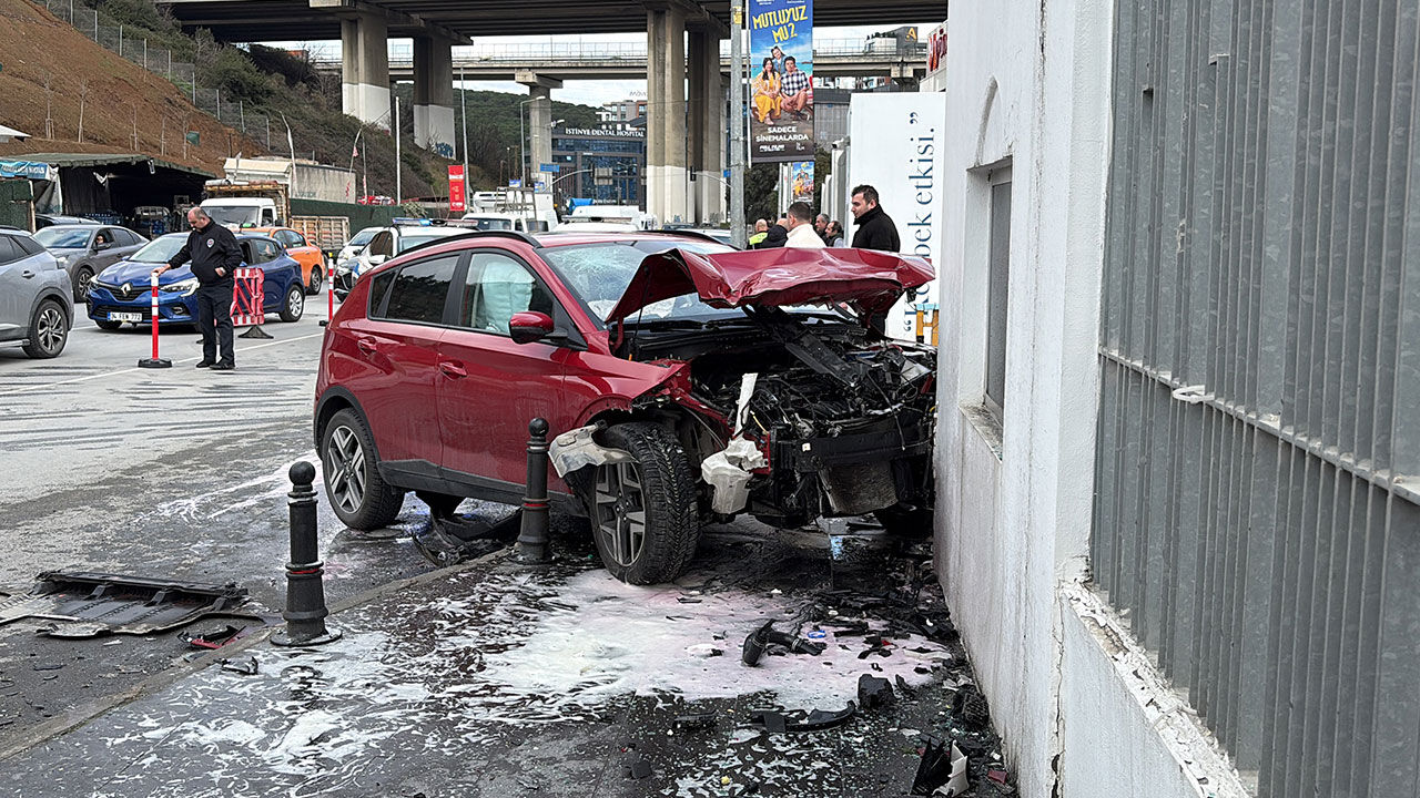 İstanbul Kağıthane’de önünde ilerleyen araca çarpmamak için manevra yapan sürücü, önce yol kenarında park halinde bulunan otomobile vurdu ardından da okul duvarına çarptı. Kazada otomobilde bulunan 2 kişi yaralandı. Kaza anı güvenlik kamerasına yansıdı.
